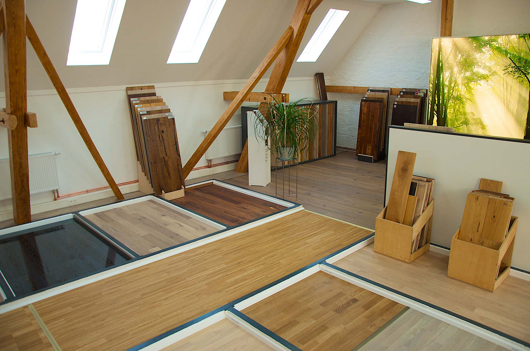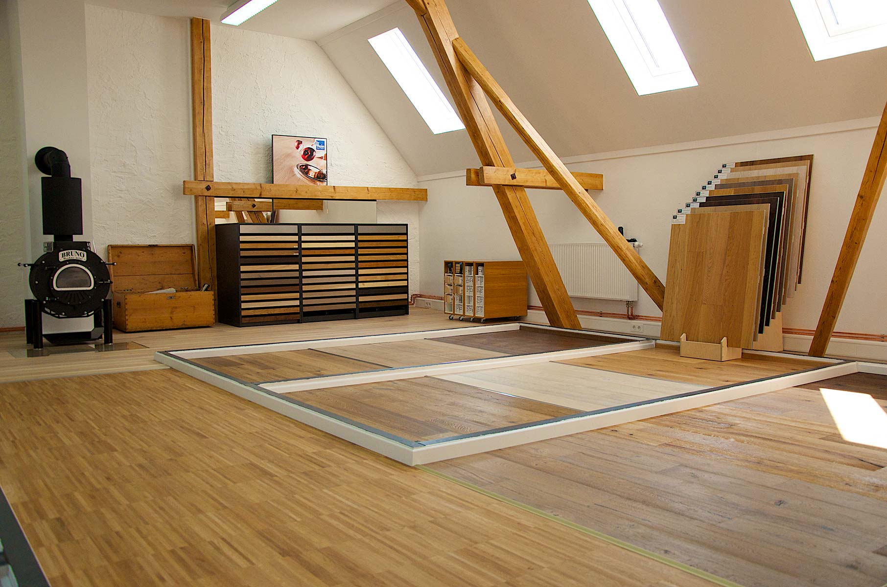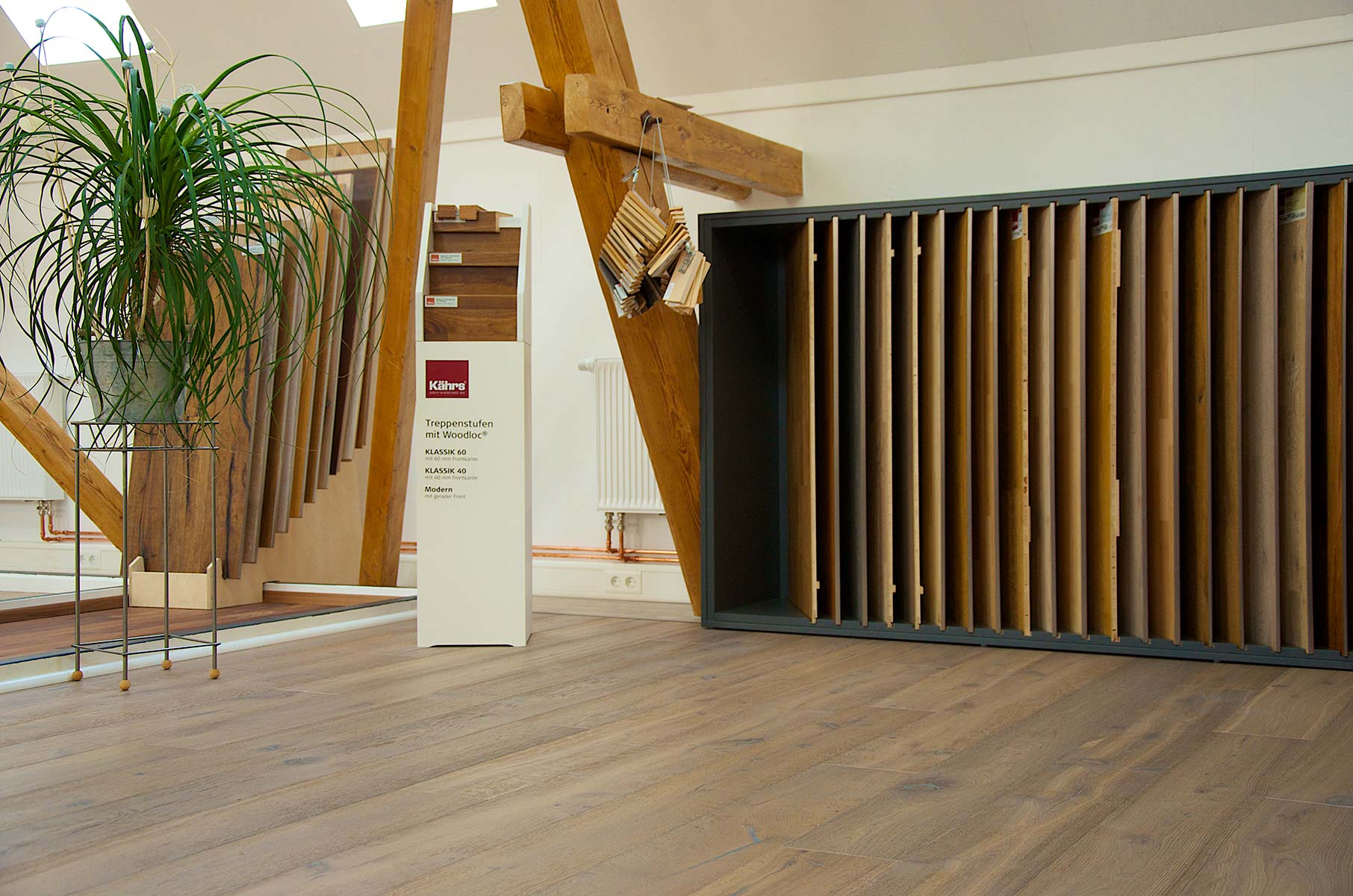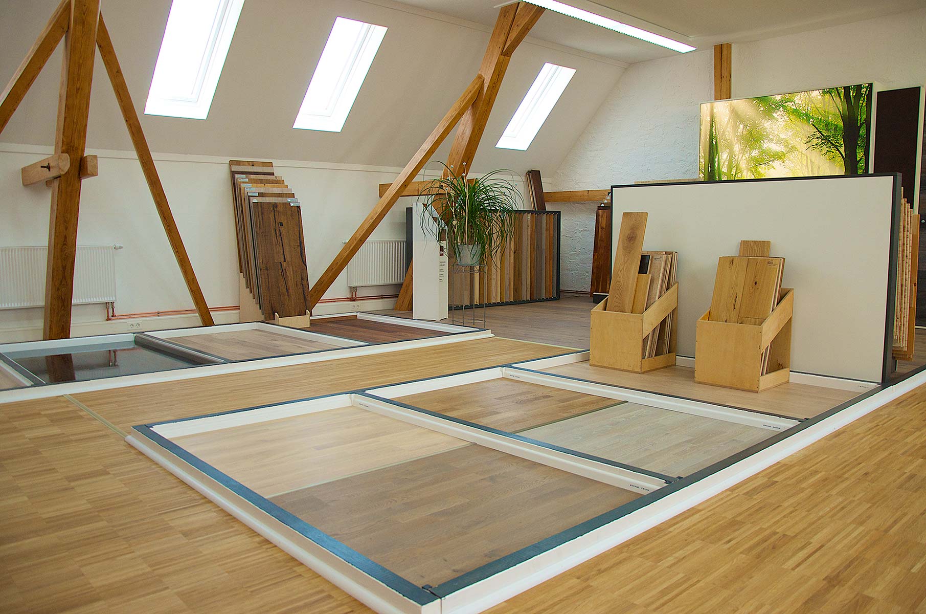 Unsere großzügigen Ausstellungen bieten Ihnen vielerlei Anregungen, wie sich unterschiedliche Einrichtungstile mit Parkettböden kombinieren lassen.