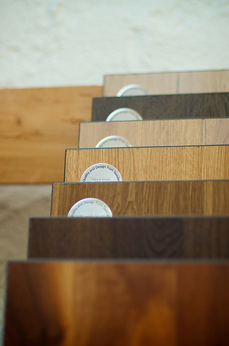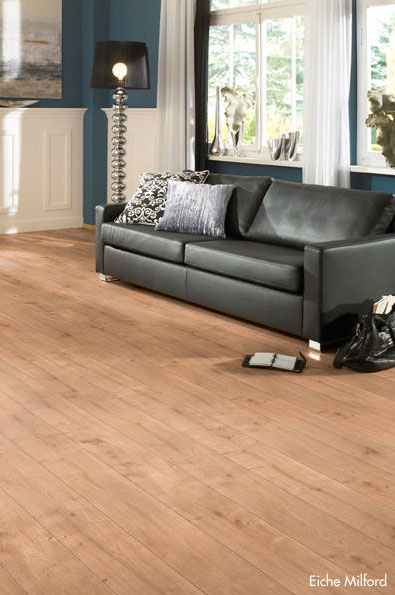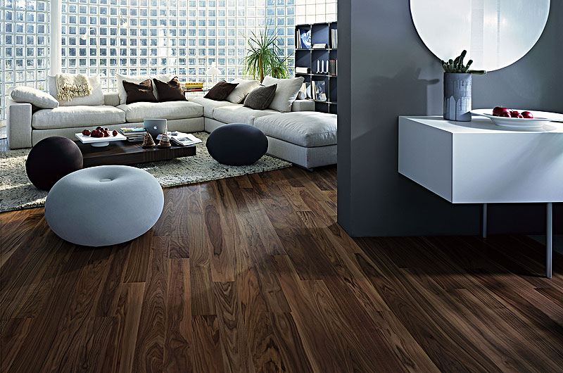 Es bietet sich ein breites Angebot von hellen bis dunklen Holzarten und Designs in matter, seidenmatter oder geölter Ausführung. -